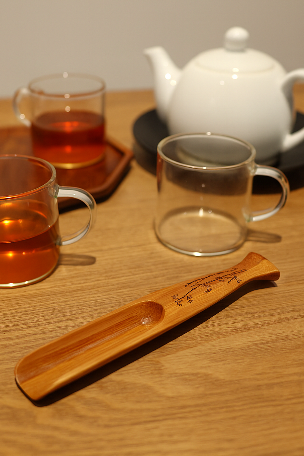 Sculptée dans un bois lisse et durable, cette cuillère de dosage arbore une gravure fine et délicate qui apporte une touche artisanale à chaque préparation de thé ZenTea.